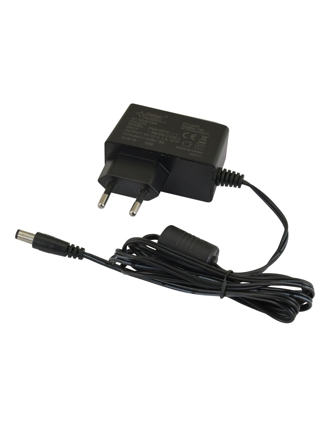 Zasilacz przeznaczony jest do zasilania z sieci 230 V kamer telewizji przemysłowej wymagających napięcia 12 V DC. Przewód zasilający zakończony jest wtyczką DC5,5/2,1. Zasilacz jest wyposażony w zabezpieczenie przeciwzwarciowe i przeciążeniowe.