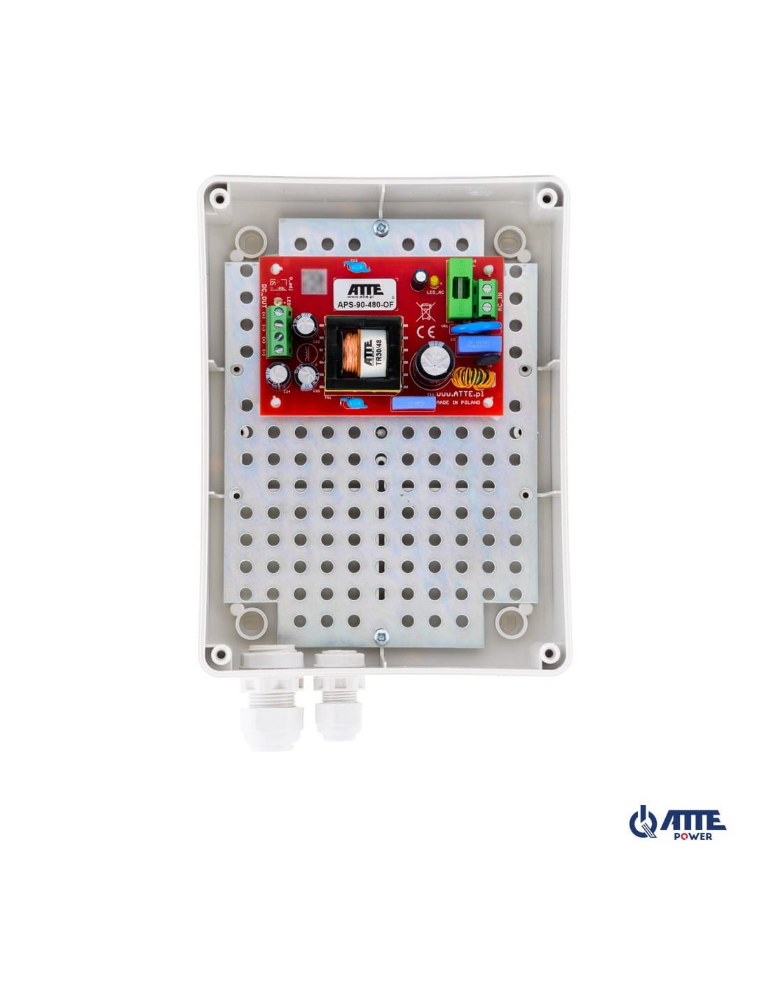 APS-90-480-M1 to zasilacz sieciowy dostarczający stabilnego napięcia stałego dla wymagających urządzeń elektronicznych m.in. kamer CCTV, rejestratorów itp. Dzięki integracji zabezpieczeń przeciwprzepięciowych i zwarciowych jest on polecany szczególnie do pracy w systemach monitoringu wymagających wysokiej niezawodności zasilania. Układ zasilacza to wysokosprawna przetwornica impulsowa zapewniająca izolację pomiędzy siecią 230 VAC i zasilanym urządzeniem.