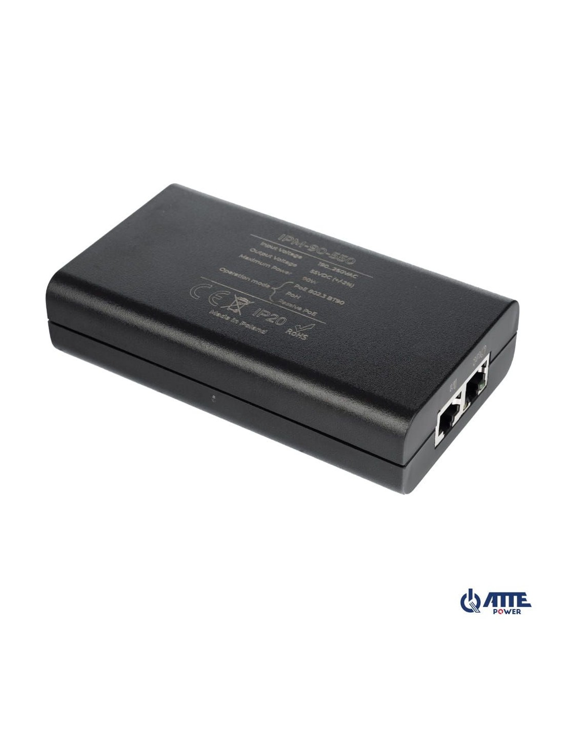 IPM-90-550 to jednoportowy gigabitowy midspan PoE zgodny ze standardami IEEE 802.3af/at/bt (90W) z wbudowanym wyświetlaczem LCD.