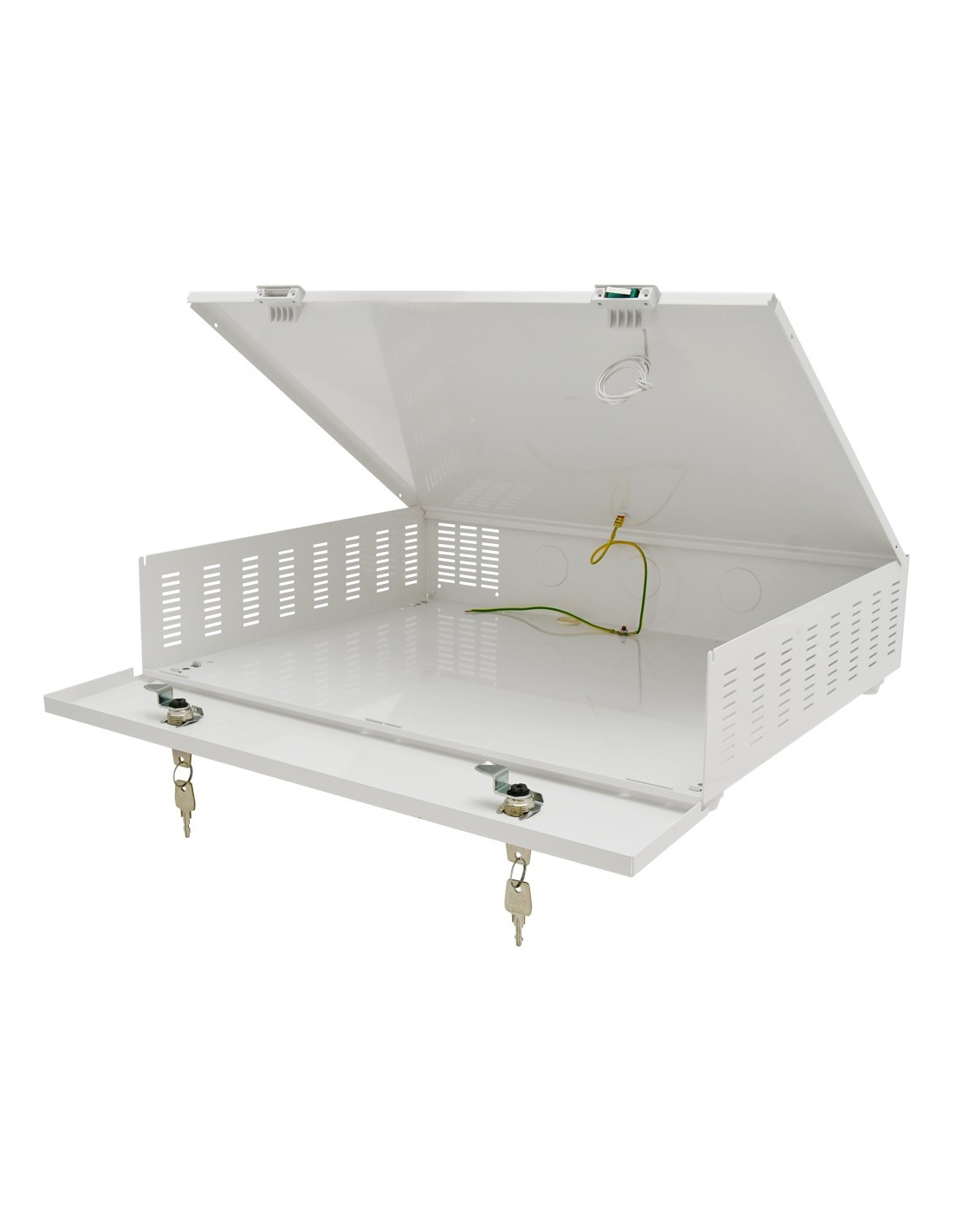 Konstrukcja obudowy dostosowana do wymagań z zakresu ochrony danych osobowych (RODO), które muszą być chronione i bezpiecznie przechowywane. Obudowa służy do zabezpieczenia rejestratora przed niepowołanym dostępem lub kradzieżą. Wykonana jest z blachy o grubości 1mm. Na wyposażeniu dwa zamki (różny kod), do każdego zamka dwa klucze w zestawie oraz tamper otwarcia obudowy i oderwania od ściany.
