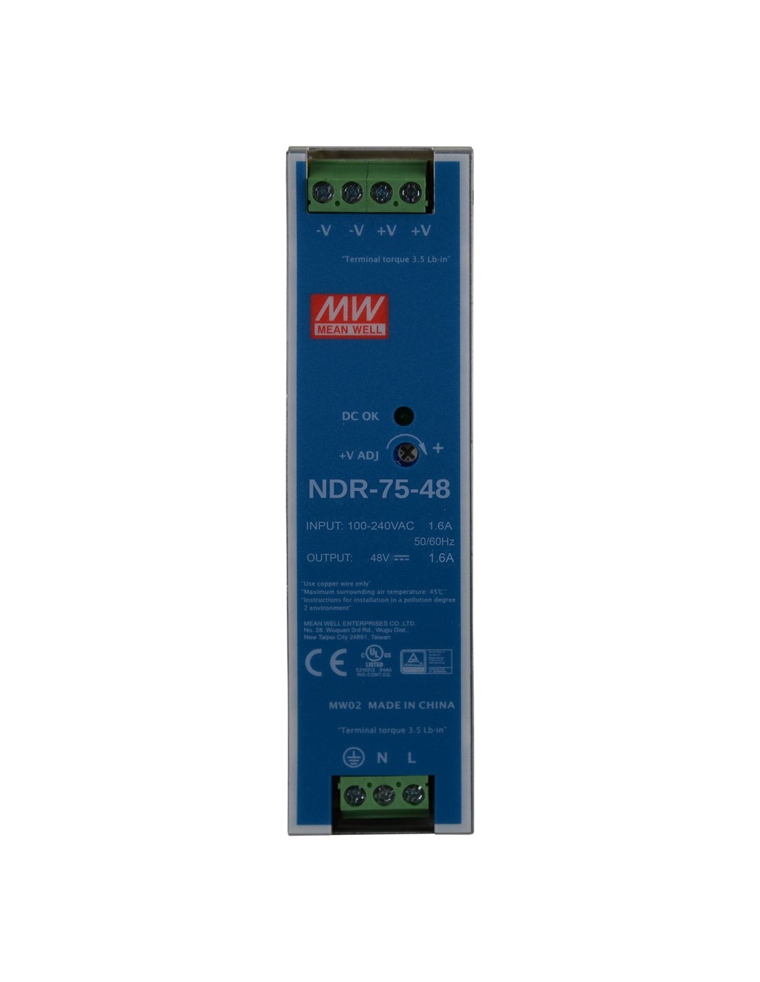 | Wyjście zasilania | 1.6 A / 48 V DC zakres regulacji napięcia wyjściowego: 48 - 55 V DC |