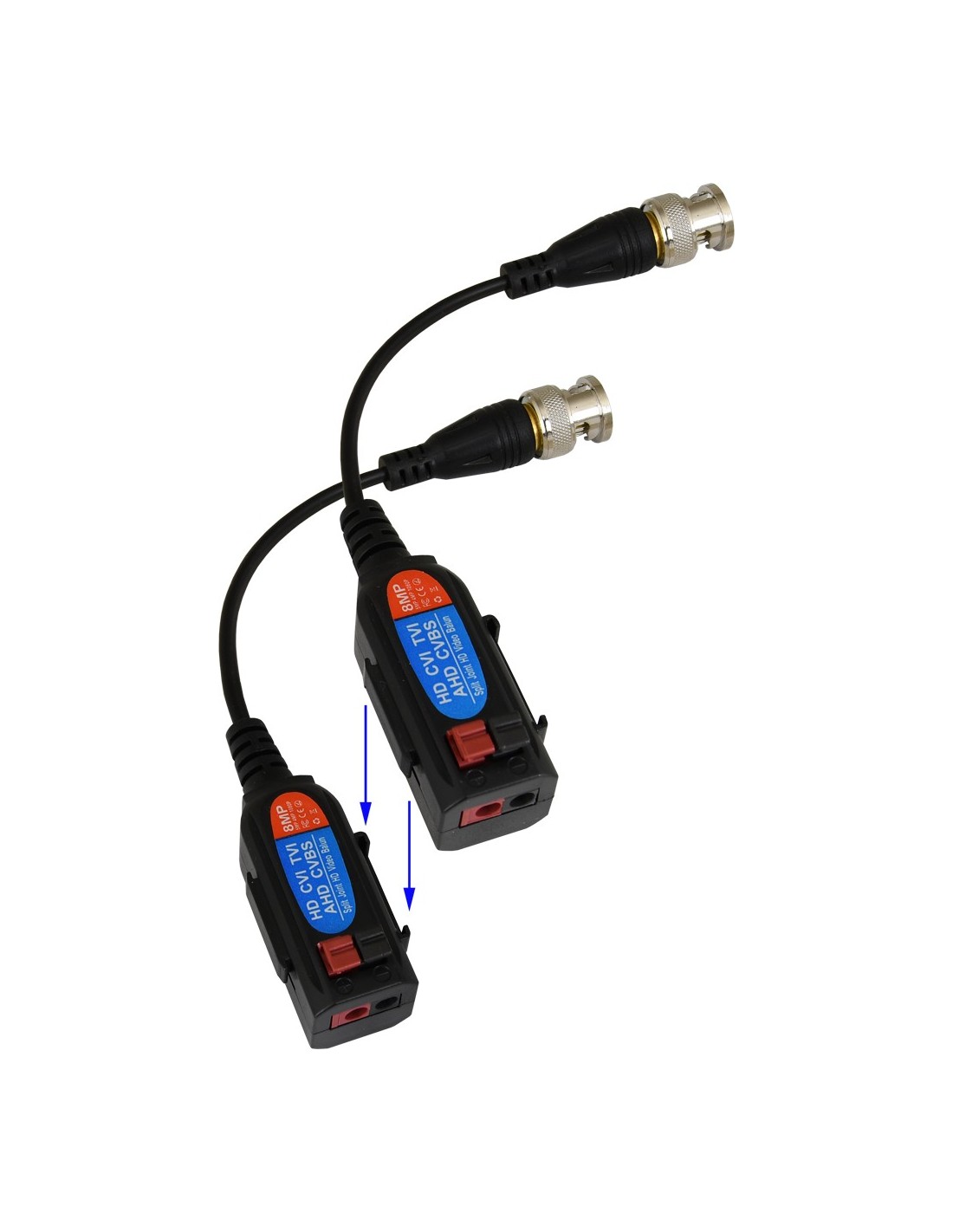 | Zasięg transmisji sygnału video | UTP, Cat 5e 450m - HD-CVI 230m - HD-TVI 320m - AHD 450m - CVBS Obsługa kamer do 8 Mpx |