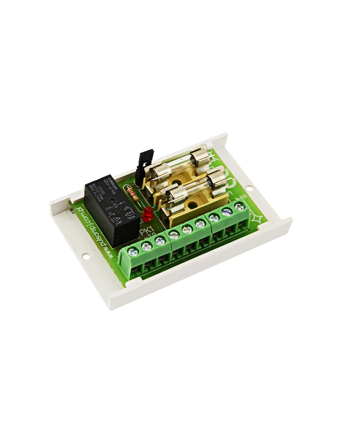 Moduł przekaźnikowy PK1 (AWZ513) przeznaczony jest do stosowania w instalacjach niskonapięciowych. Służy do sterowania, sygnalizowania stanów np. w systemach alarmowych, kontroli dostępu. Może być stosowany do sterowania urządzeniami o dużym poborze prądu poprzez wyjścia OC systemów alarmowych. Ponadto zapewnia separację galwaniczną sygnałów, źródeł zasilania w stosunku do wyjść modułu. Posiada szeregowy bezpiecznik w obwodzie przekaźnika (C, NO, NC).