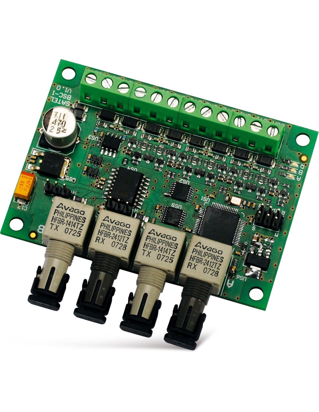 - obsługa dwóch par światłowodów umożliwiająca łączenie wielu modułów w łańcuch