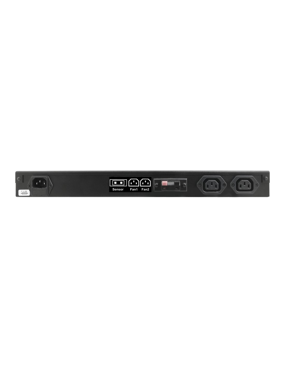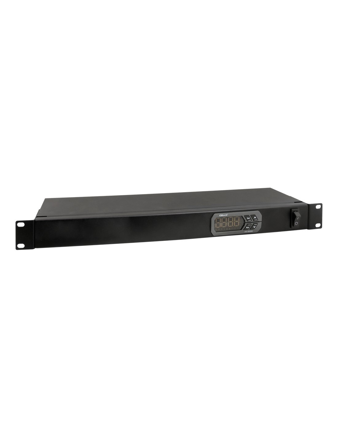 Panel cyfrowego termostatu w obudowie RACK 19” wysokości 1U. Posiada dwa gniazda zasilające – służące do sterowania zespołami wentylatorów typu RAWP / RAWP-1 / RAW1 / RAW2. Panel posiada rozłączny czujnik temperatury o długości 2m i rozłączny kabel zasilający 230 V AC o długości 2m.