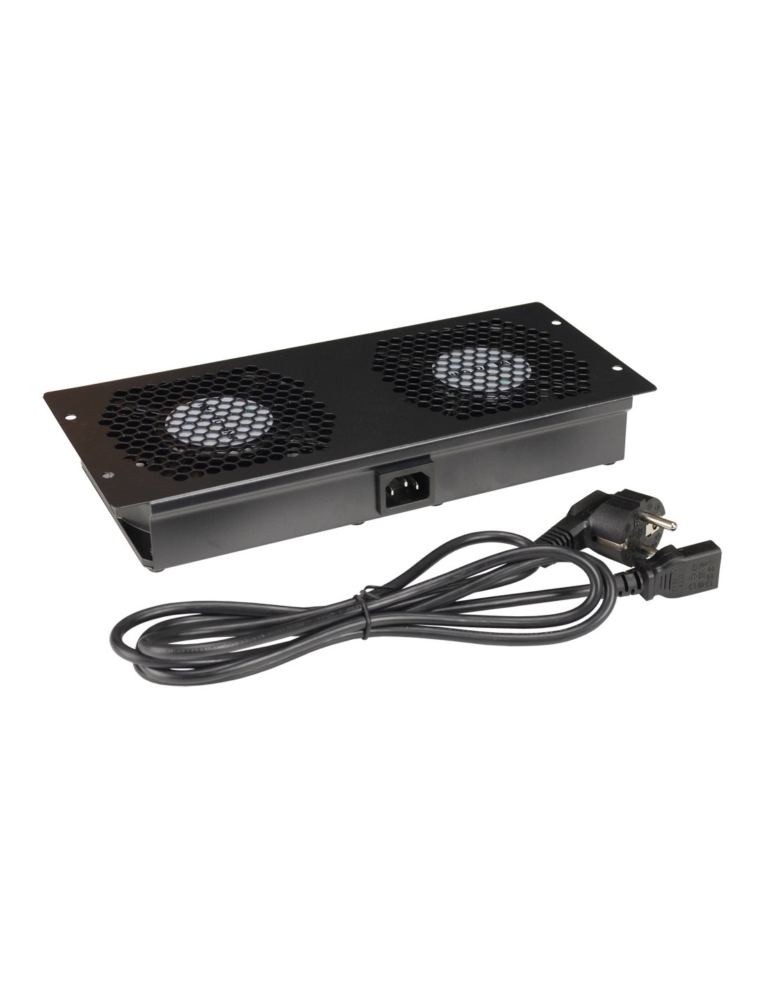 Panel wentylatorów przeznaczony jest do zainstalowania w płycie górnej szafy RACK, wymusza on obieg powietrza we wnętrzu szafy. Montowany jest od zewnątrz w szafie RACK. W komplecie znajduje się rozłączny przewód 230VAC.