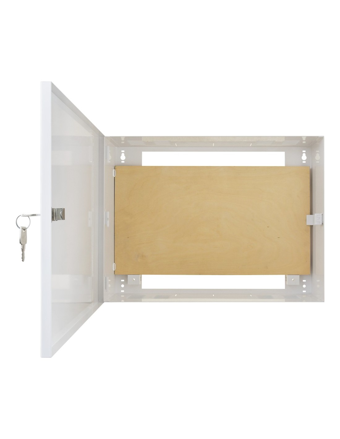Obudowa posiada płytę montażową (sklejka), do której w łatwy i szybki sposób można za pomocą wkrętów zamontować urządzenia. Obudowa wyposażona jest w zamek na klucz o tym samym kodzie MR027. Do obudowy można zamontować dodatkowe elementy dystansujące (4szt / dołączone do obudowy) Taki dystans - 14mm od ściany umożliwia swobodne doprowadzenie przewodów do urządzeń zamontowanych w obudowie.