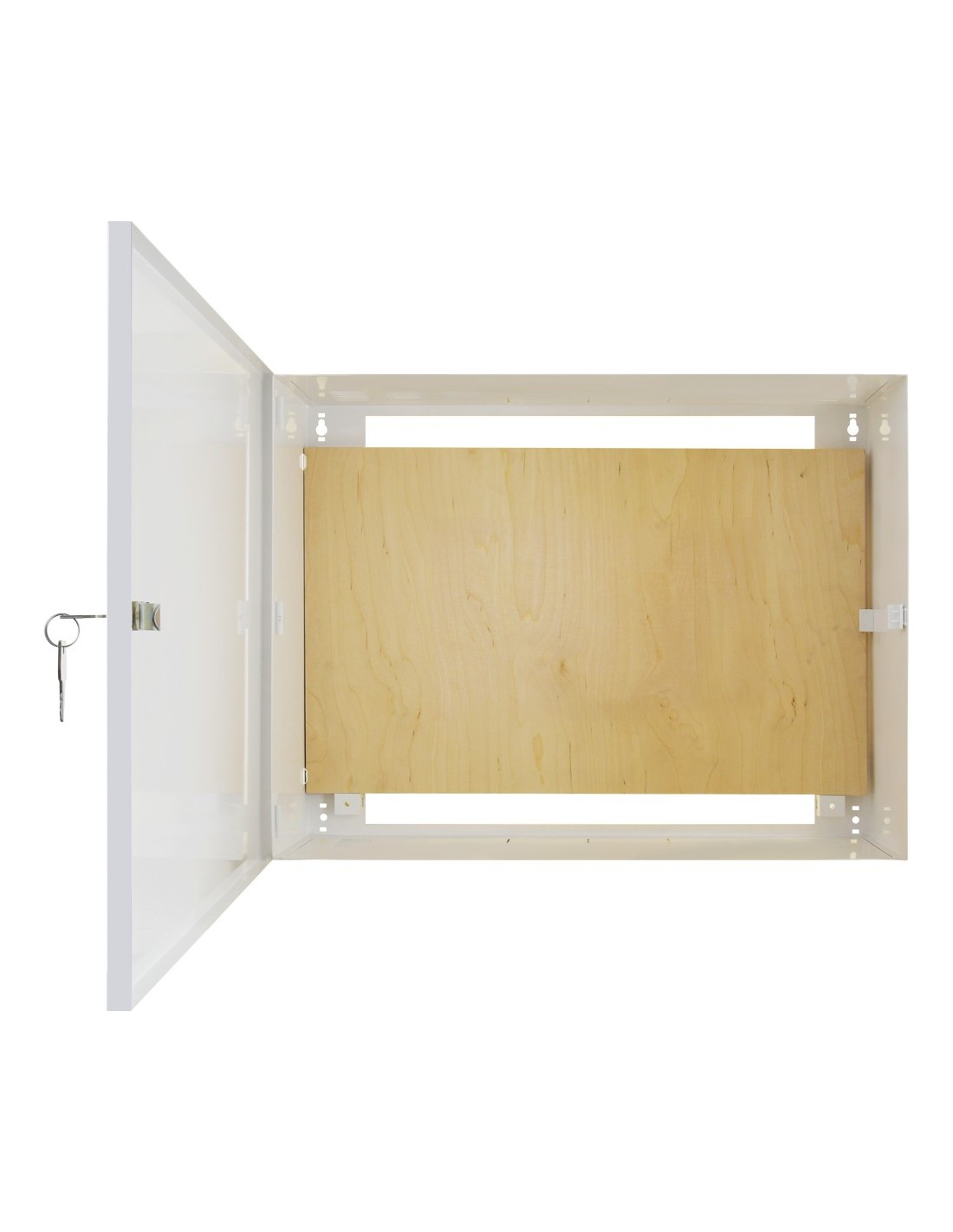 Obudowa posiada płytę montażową (sklejka), do której w łatwy i szybki sposób można za pomocą wkrętów zamontować urządzenia. Obudowa wyposażona jest w zamek na klucz o tym samym kodzie MR027. Do obudowy można zamontować dodatkowe elementy dystansujące (4szt / dołączone do obudowy) Taki dystans - 14mm od ściany umożliwia swobodne doprowadzenie przewodów do urządzeń zamontowanych w obudowie.
