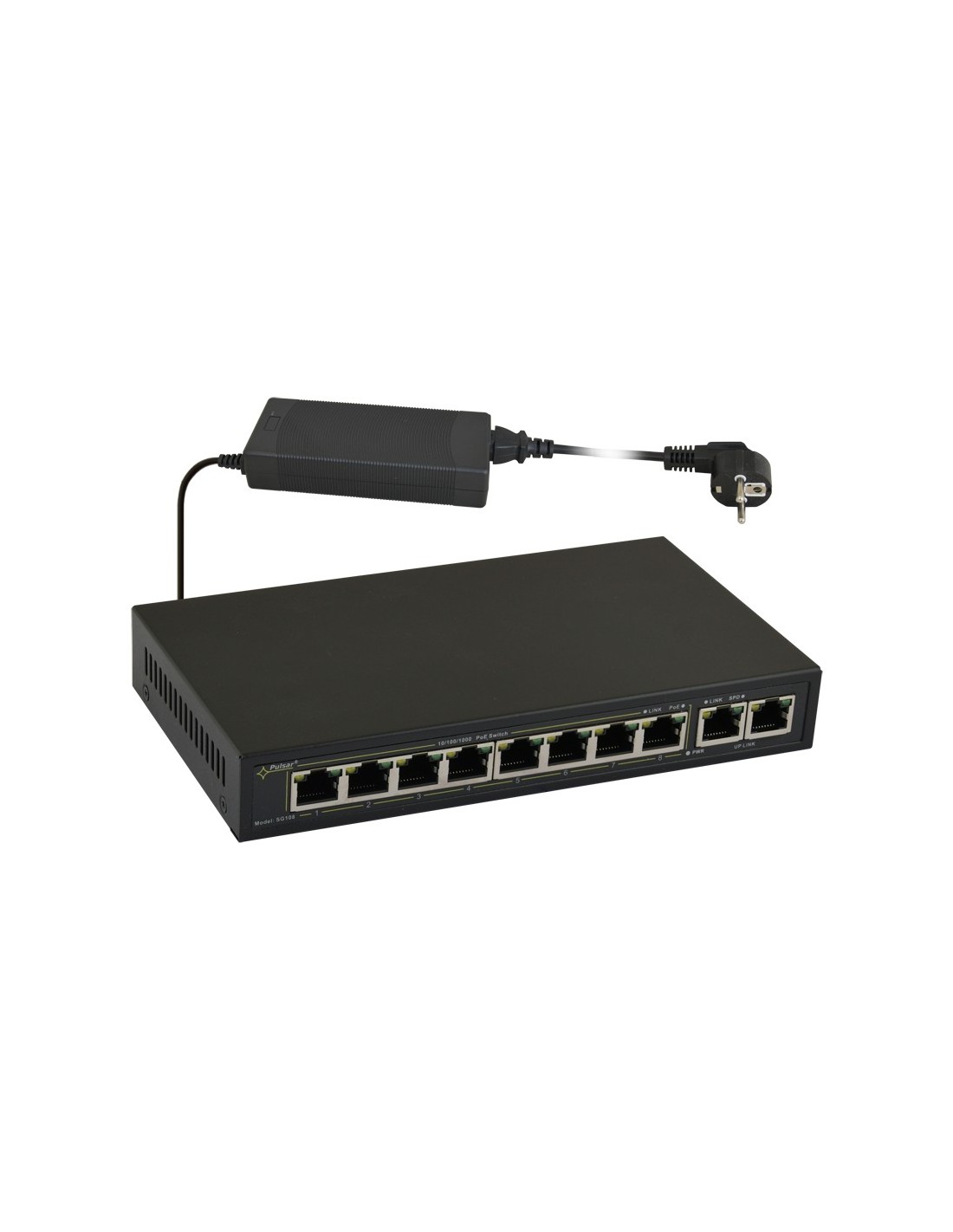 | Przeznaczenie | SG108 to 10-portowy switch PoE przeznaczony do zasilania kamer IP pracujących w Standardzie IEEE 802.3af/at. Switch na portach od 1 do 8 posiada funkcję automatycznej detekcji urządzeń zasilanych w standardzie PoE/PoE+. |