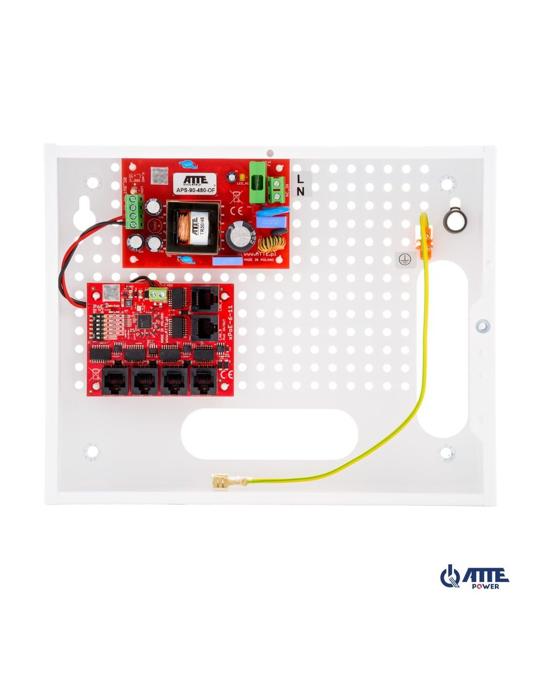 Zestaw do 5 kamer IP, w obudowie wewnętrznej ABOX-E, zasilacz 96W, switch PoE 6 portowy 10/100Mbps (5xPoE + 1xUplink), bezpieczniki elektroniczne, tryb Long Range