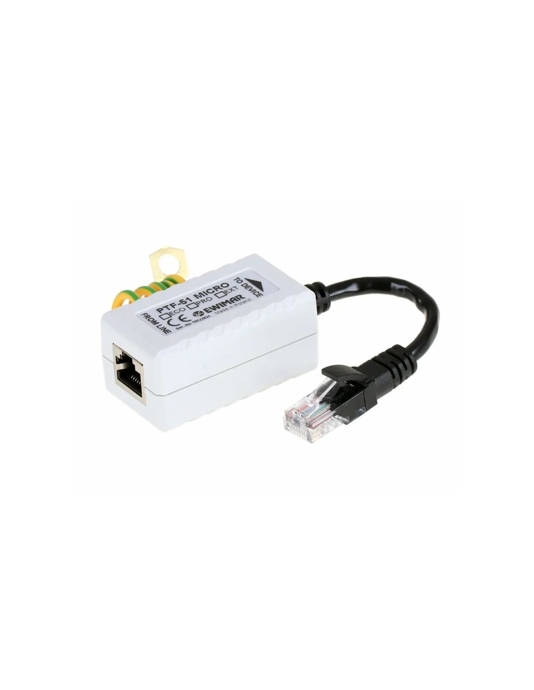 PTF-51-PRO/PoE/Micro v2 jest miniaturowym ogranicznikiem przepięć, dedykowanym do sieci LAN 100-BaseT, opartych na przewodach UTP 5 lub 6 kategorii. Małe wymiary oraz wbudowany przewód z wtykiem, umożliwia szybki i łatwy montaż oraz ukrywanie urządzenia w niedużych obudowach. Idealnie nadaje się do ochrony kamer przemysłowych IP, wyposażonych w oryginalne podstawy ukrywające akcesoria i wszelkie połączenia. Ogranicznik chroni przed skutkami przepięć oraz wyładowań atmosferycznych, a także aktami wandalizmu (działanie paralizatorów). Urządzenie indywidualnie chroni każdą parę transmisyjną, gdzie następuje eliminacja przepięć powyżej 3,5V wewnątrz nich oraz odprowadza do ziemi ładunki o wartościach do 2,5kA na żyłę przewodu.