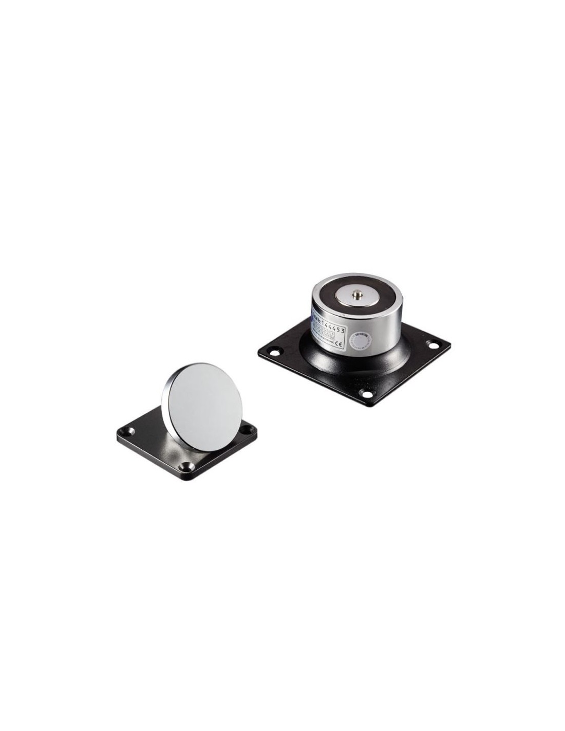 Trzymacz drzwiowy o zwiększonej sile trzymania (180kg), do montażu naściennego, uniwersalne zasilanie 12/24VDC.